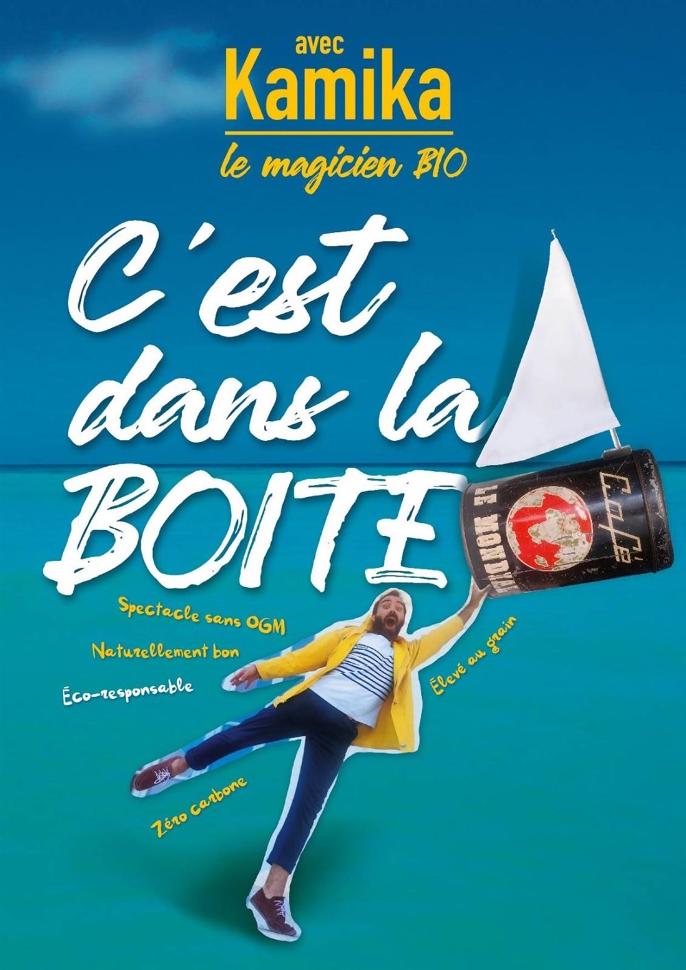 Kamika le magicien bio vous présente "C'est dans la boîte", un spectacle où magie navigue avec théâtre.